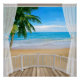 Profitez de chaque jour à la vue d'avoir un balcon avec vue sur la mer de la plage.Avec grâce à PEXELS pour l'utilisation commerciale gratuite de photos d'un palmier et une scène de l'océan, Holbrook Art a utilisé des techniques de peinture à l'huile numérique pour les modifier et peint voir à travers les rideaux et un balcon pour créer une vue réaliste sur la plage et l'océan comme vue depuis une chambre de station.