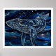 Un tableau d'une baleine à bosse nageant sous l'eau.