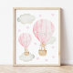 Poster Ballon à Air Chaud Rose, Animaux Mignons, Chambre
