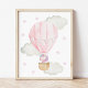 Poster Ballon à Air Chaud Rose, Licorne, Étoiles, Nurseri