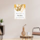 Une bannière de bienvenue pour une Quinceañera girly et glamour, 15e anniversaire fête. Un arrière - plan blanc décoré de faux gouttes de parties scintillant d'or, la peinture goutte à goutte, ballons. Personnalisez et ajoutez un nom et un âge. Retour : aucune conception