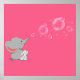 L'éléphant souffle des bulles tandis que le lapin regarde sur l'arrière - plan rose. Poster parfait pour votre chambre bébé filles.