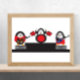Un adorable groupe de pingouins. Un pingouin joue de la guitare. Un autre oiseau joue de la basse et un troisième de la batterie.