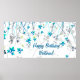Bannière d'anniversaire avec rubans flottants bleu sarcelle. Ajoutez votre propre message et redimensionnez selon vos besoins. La taille affichée est de 12x24.