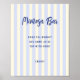 Panneau de bar mimosa à thème méditerranéen blanc avec une palette de couleurs douce et accueillante de crème beurrée et rayures bleues douces. Cette toile de fond paisible est complétée par une police manuscrite d'un bleu foncé amusant, créant un mélange harmonieux de couleurs.
