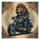Un Lion fantaisiste nommé Bart à bord d'une moto portant une veste en cuir.