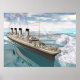 Célèbre navire Titanic flottant parmi les icebergs sur l'eau par jour nuageux