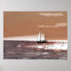 An abstract art design of a sail boat heading towards the harbour in the late evening. Pays de Galles