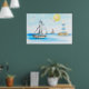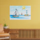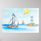 Cette jolie affiche murale mesure 36"x24". Il comprend deux voiliers flottant dans un océan bleu profond autour d'un grand phare. Frame-le ou pendre-le - votre choix.