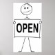 Décorez votre espace avec une affiche ludique qui envoie un message clair. Ce design présente un personnage bâton souriant tenant un panneau « OUVERT » dans un style simple et cartoon. Idéal pour les entrées de magasins, les bureaux à domicile, les studios ou les espaces de travail créatifs, cette affiche combine des lignes épurées et des vibrations amicales pour créer une atmosphère accueillante. Un excellent moyen de montrer votre énergie de porte ouverte avec humour et charme.