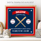 Poster Bâtons de baseball rouges et bleus et statistiques