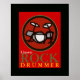 Cool de batteur de rock classique imprimé pour décorer les murs de la salle des musiciens - la couleur arrière - plan rouge peut être changée ("personnaliser le bouton")