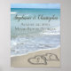 Deux endroits où interlocking beach wedding hearts drawn in the sand makes an elegant tropical ocean coastal nautical theme wedding, matching set of items. Pretty turquoise water waves crashing on the shore and pastel blue sky.
