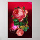 Élégant , coloré design floral de style vintage, rose de chou rose sur fond rouge burgundy..