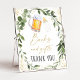 Ce design est doté d'une verdure aquarelle avec une bière et un biberon et des accents de papier doré.