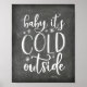 Ajoutez une touche rustique à votre décor de vacances avec cette impression encadrable hivernale. Le design typographique comporte l'expression "bébé il fait froid dehors" en blanc, en caractères lettrés accentués de flocons de neige, sur un arrière - plan de tableau noir.