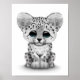 Poster Bébé mignonne Léopard de neige sur blanc