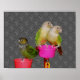 Trois adorables affiches de perroquets de bébé conure. Deux sont des conures à la cannelle et la troisième est une conure à la carafe noire. Photographie d'animal par Susan.