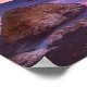 Poster avec une belle photo aux couleurs saisissantes de violet, bleu et rose au coucher du soleil. Un joli littoral parsemé de rochers.