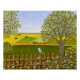 Une affiche avec une belle image d'une scène naturelle : Un oiseau assis sur une clôture patinée, des fleurs sauvages poussant autour de la clôture, un fermier sur un tracteur, travaillant ses terres, des arbres avec des feuilles, et des terres agricoles de différentes couleurs. L'arrière - plan, l'image et le texte peuvent être customisés. Oeuvre originale de W.B.