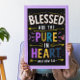 Illustration créative avec un verset Biblique dessiné à la main, Béni soit Le Pure dans le Coeur Matthieu 5.8 entouré de motifs complexes et de motifs.
