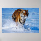 Avec une vue à couper le souffle d'une course de tigre du BengaleIng dans la belle eau bleue de l'océan avec des éclaboussures d'eau qui se répandent partout.Ceci est une belle photo sur cette affiche