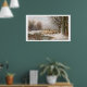Poster Bergère avec son troupeau dans un paysage hivernal