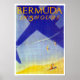 affiche de voyage aérien vintage faisant la promotion des premiers vols d'avion à hélice vers les Bermudes.