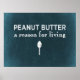 Beurre d'arachide, une raison de vivre. Si vous êtes un fou de beurre d'arachide, alors vous saurez à quel point cette drôle de conception alimentaire est vraie. Tableau noir avec cuillère et texte de grunge en difficulté.