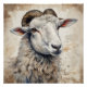 Un mouton avec une laine détaillée et des yeux expressifs est représenté contre un arrière - plan doux et flou. Les couleurs naturelles rehaussent l'aspect vivant de sa molleton bouclée.