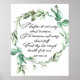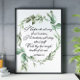 Citation de la Bible décorative avec couronne verte sur un arrière - plan blanc et police manuscrite.