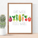 Citation "Mange bien" avec des légumes légume colorés à l'aquarelle. Maïs, radis, carottes, poivre rouge, navet d'aubergines et céleri. Un cadeau parfait pour la Permaculture, le jardinier, le fermier et le Plante Les mangeurs sains Lover.