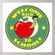 Un ver de livre dans une pomme sur un dessin rond de vert qui dit "Bienvenue à l'école" sur les T-shirts, tasses, sacs, cartes, autocollants, porte - clés, boutons et autres articles pour les administrateurs, professeurs et enseignants de l'école!