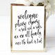 Un élégant panneau mariage de pointe, comporte le texte "Bienvenue s'il vous plaît choisir un siège pas un côté, nous sommes tous famille une fois le noeud est lié" dans une police de script extroversée, la texture de la brosse ajoute une sensation spontanée et ludique. La couleur arrière - plan peut être personnalisée selon vos besoins et préférences, s'il vous plaît contactez-moi si vous avez une demande spéciale.