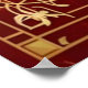 Illustration d'un barbecue stylisé avec les mots Beer & BBQ Go Together. Le design est décoré dans des tons rouge et or avec des touches décoratives.