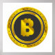 Un bitcoin d'or pour représenter la crypto-monnaie. Ce design semble vraiment efficace sur cette affiche