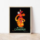 Bitter Campari (1921) | L’affiche publicitaire de 1921 de Leonetto Cappiello pour Bitter Campari présente un design ludique et mémorable, avec un joli jester enveloppé d’un écorce orange en spirale, contenant une bouteille de Campari. Contre un arrière - plan noir, la pose dynamique du bouchon et les teintes oranges audacieuses créent un contraste saisissant, symbolisant la nature zeste et spirituelle de la boisson. Cette affiche imaginative et iconique capture l'énergie et la vitalité associées à la marque Campari, en faisant un classique durable dans l'art publicitaire. Utilisez les outils de conception pour ajouter du texte personnalisé ou personnaliser l'image.