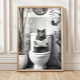 Poster Black and White Bathroom Cat Print, Funny Posters,