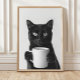 Poster Black Cat Drinking Coffee Wall Art, Black and Whit