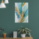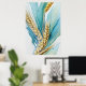 Cette impression d'aquarelle présente une tige détaillée de blé sur une turquoise aquarelle bleu-vert en surbrillance arrière - plan. Cette impression non encadrée est disponible en différentes tailles pour s'adapter aux cadres standard.