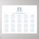 Blanc avec texte bleu foncé et poitrine dessin art monogramme plan de table assise. Modifiez ce tableau de table mariage avec vos propres sièges et le nom des invités. Ce plan peut contenir jusqu'à 20 tables. Design original et crête avec couronne cardiaque, entrelacé de feuilles et de baies dessinés à la main par Sarah Trett pour www.mylittleedenweddings.com exclusivement sur Zazzle.