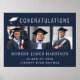 Élégante affiche de la fête de graduation bleu marine foncé pour célébrer le diplômé. "FÉLICITATIONS" est en grande typographie blanche avec l'illustration d'une casquette de graduation. Ajoutez trois photos et le nom de la jeune fille, l'année de classe et le nom de l'école dans la typographie blanche moderne. Les couleurs arrière - plan et texte peuvent être modifiées pour correspondre aux couleurs de votre école en modifiant l'outil de conception.