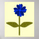 Ce joli tirage présente une image numérique d'une marguerite avec une tige verte avec deux feuilles verts et des pétales de couleur bleu clair et foncé avec un centre bleu clair. L'arrière - plan est jaune soleil avec une belle bordure bleue. La conception est disponible en plusieurs tailles d'impression différentes, dont la plus grande est présentée ici.
