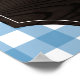 Panneau de bar en en vichy bleu rustique avec grains de bois, tournesols et votre monogramme sur les ustensiles de barbecue croisés.
