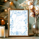 Quelque chose de bleu avant de faire des cartes d'aquarelle fleurie et cadeaux signe de douche nuptiale, avec des fleurs vintages de couleur bleue victorienne peintes à la main dans le style chinoiserie bleu clair avec une élégante calligraphie script.