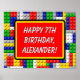Décor mural sur bannière d'anniversaire amusant. Cool Couleurs primaires, rouge vert bleu jaune blanc et gris, liés intervertissants blocs de construction de briques génériques motif ressemble à amusant jouets pour enfants. Idéal pour le thème de la fête d'anniversaire d'un garçon comme des faveurs et des décorations.