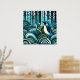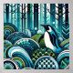 Poster Blue Green Lovey Penguin Forêt extérieure Abstrait