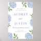 Poster Blue Hydrangea Classic Border, XL Wedding Welcome
