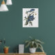 Cette impression montre trois Blue Jays, deux femelles et un mâle. Ils ont volé des oeufs du nid d'un autre oiseau et sont perchés dans un arbre qui mange les oeufs. Le geai bleu est l'un des oiseaux les plus communs aux jardins mais est un peu gênant pour les autres oiseaux nicheurs dans la cour.
