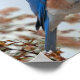 Un oiseau bleu de l'Est mâle est perché près de la boîte de nidification qu'il protège avec vigilance contre les intrus et les prédateurs. Ici, il est en garde pendant la saison non-accouplée en s'assurant que son gazon est protégé !